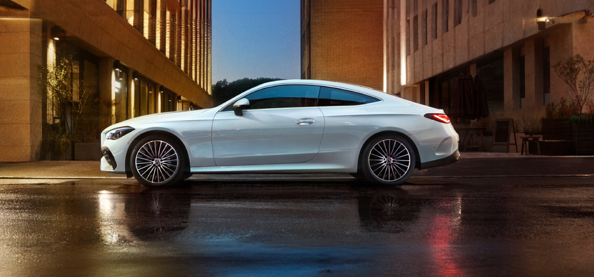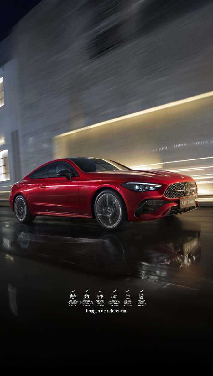 El nuevo CLE Coupé combina deportividad y elegancia con un diseño aerodinámico que cautiva desde cualquier ángulo. Su frontal “Shark Nose” con capó bajo y resaltes longitudinales transmite carácter, mientras la parte trasera musculosa con luces de dos piezas unidas por un elemento negro brillante aporta un acabado moderno y sofisticado.