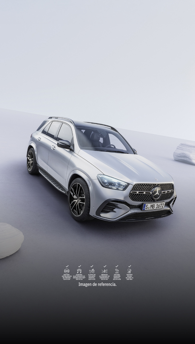 Imponente y elegante: la parte delantera de la GLE se caracteriza por su parrilla de radiador de la línea AMG con patrón cromado Mercedes-Benz. Las nuevas salidas de aire y los detalles refinados del faldón delantero realzan su imagen deportiva y moderna.