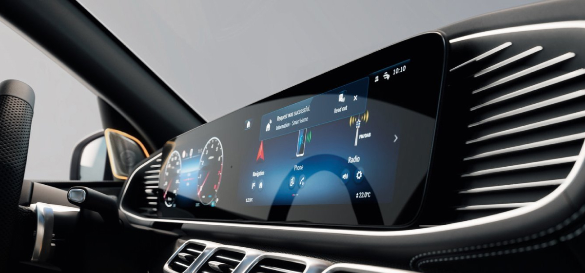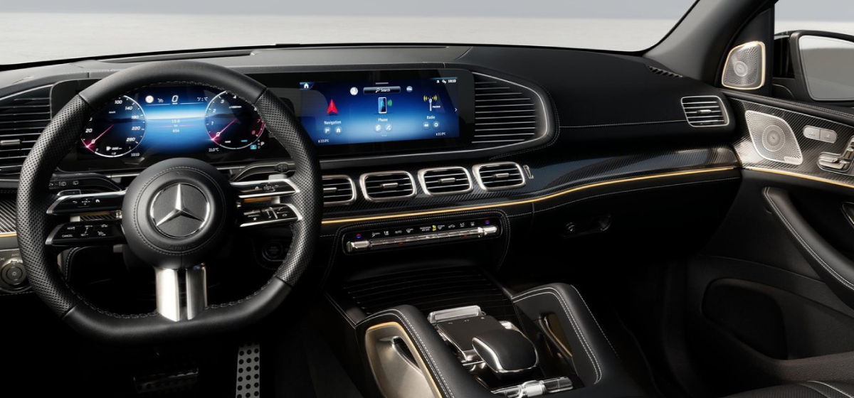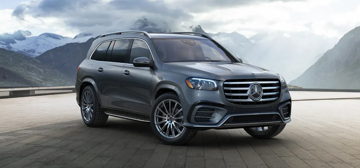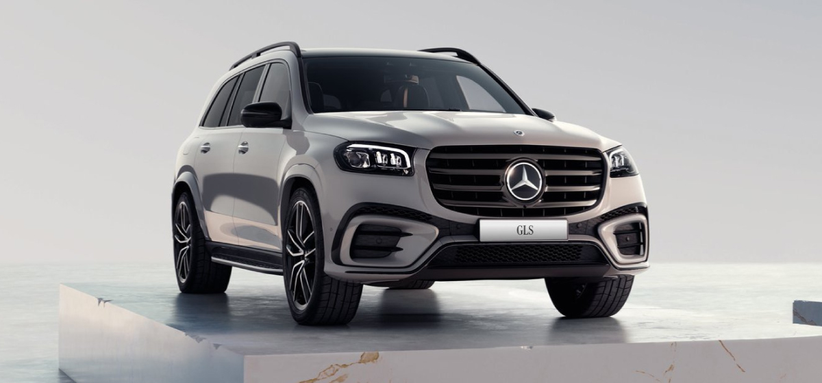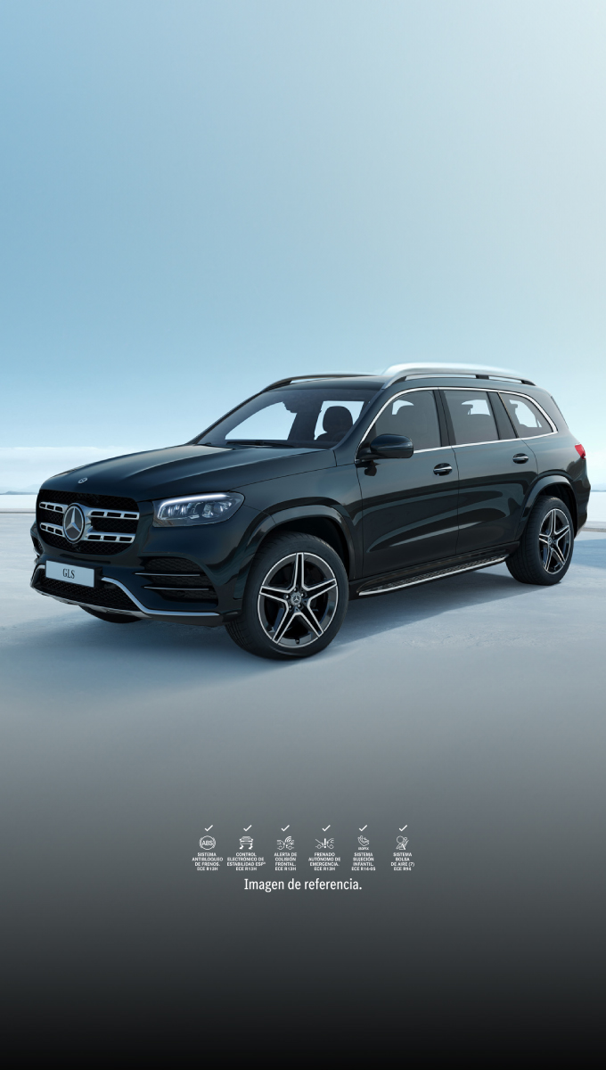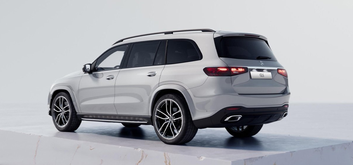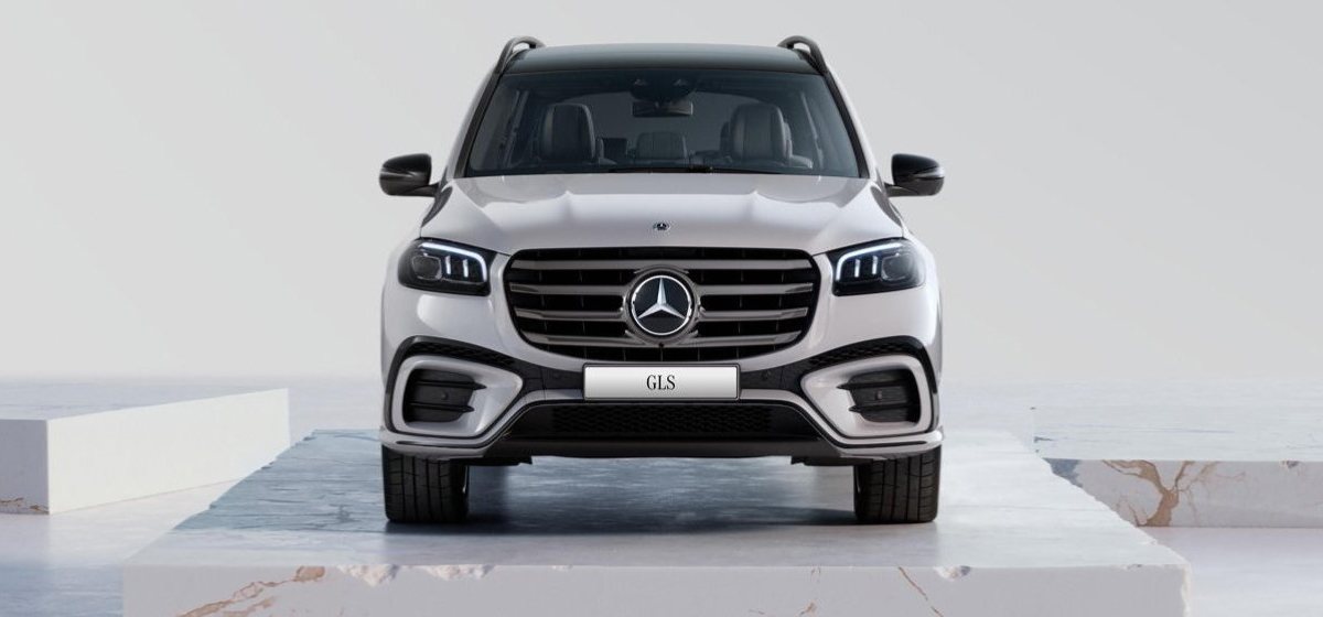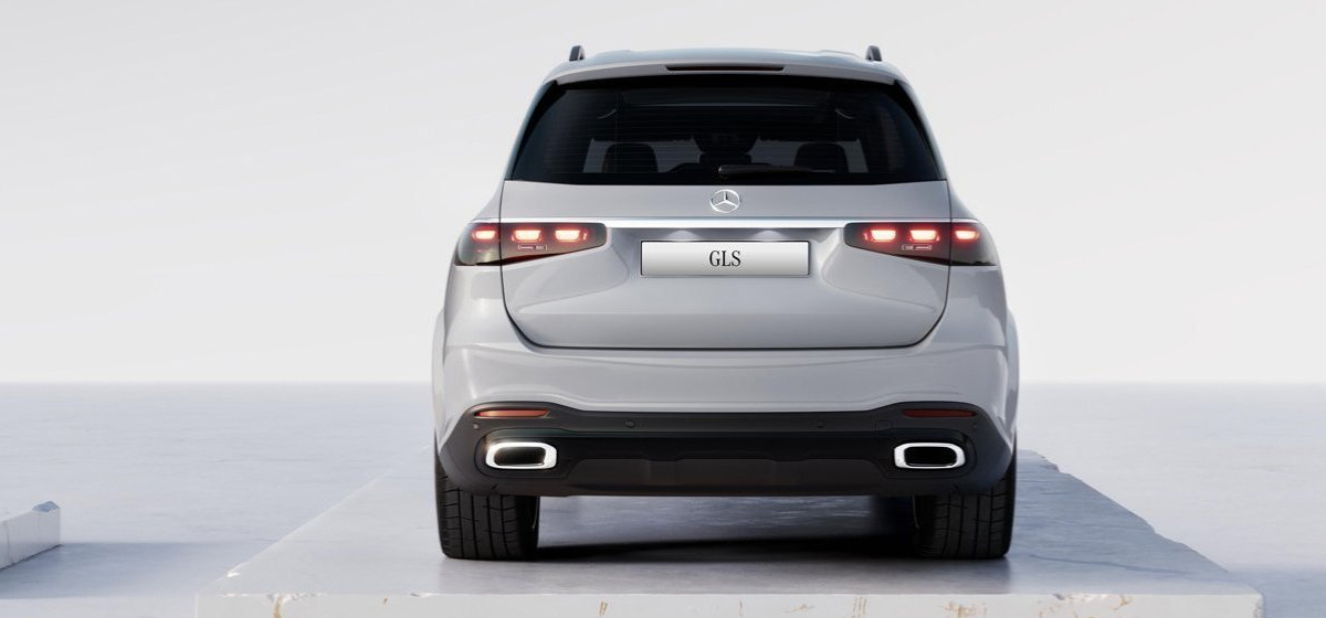 Imponente desde el primer vistazo: el frontal de la GLS 450 4MATIC se distingue por su faldón delantero moderno y la parrilla del radiador ampliada con cuatro lamas cromadas, que refleja el carácter SUV de gran fuerza y la elegancia estética típica de Mercedes-Benz.